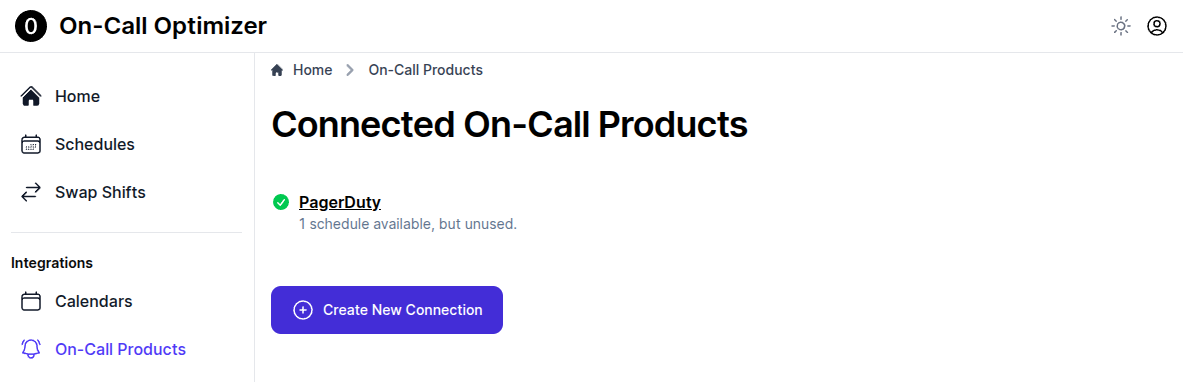 - Click ‘On-Call Products’ in the menu and select the connection to the product where your existing schedule exists from the displayed list.